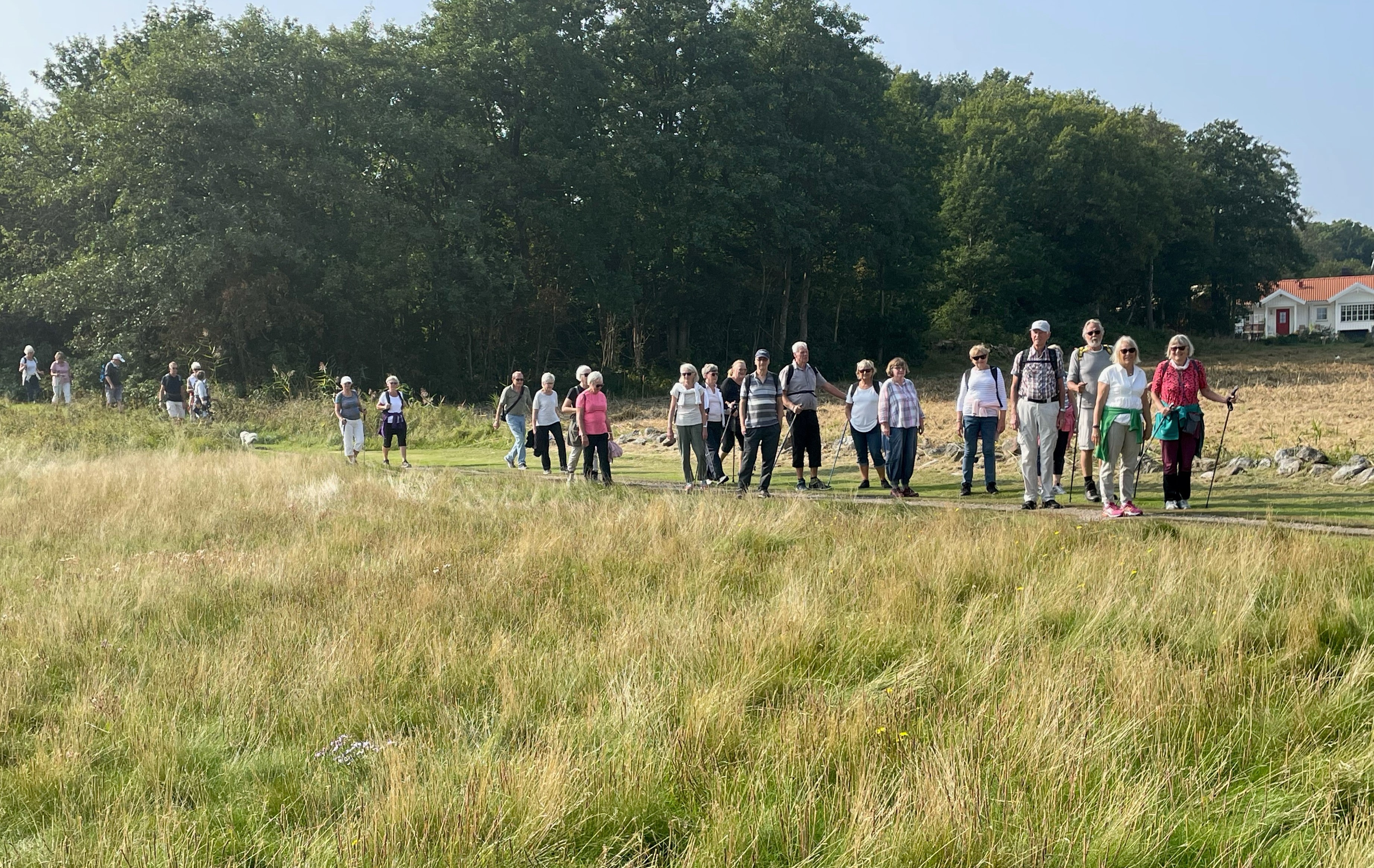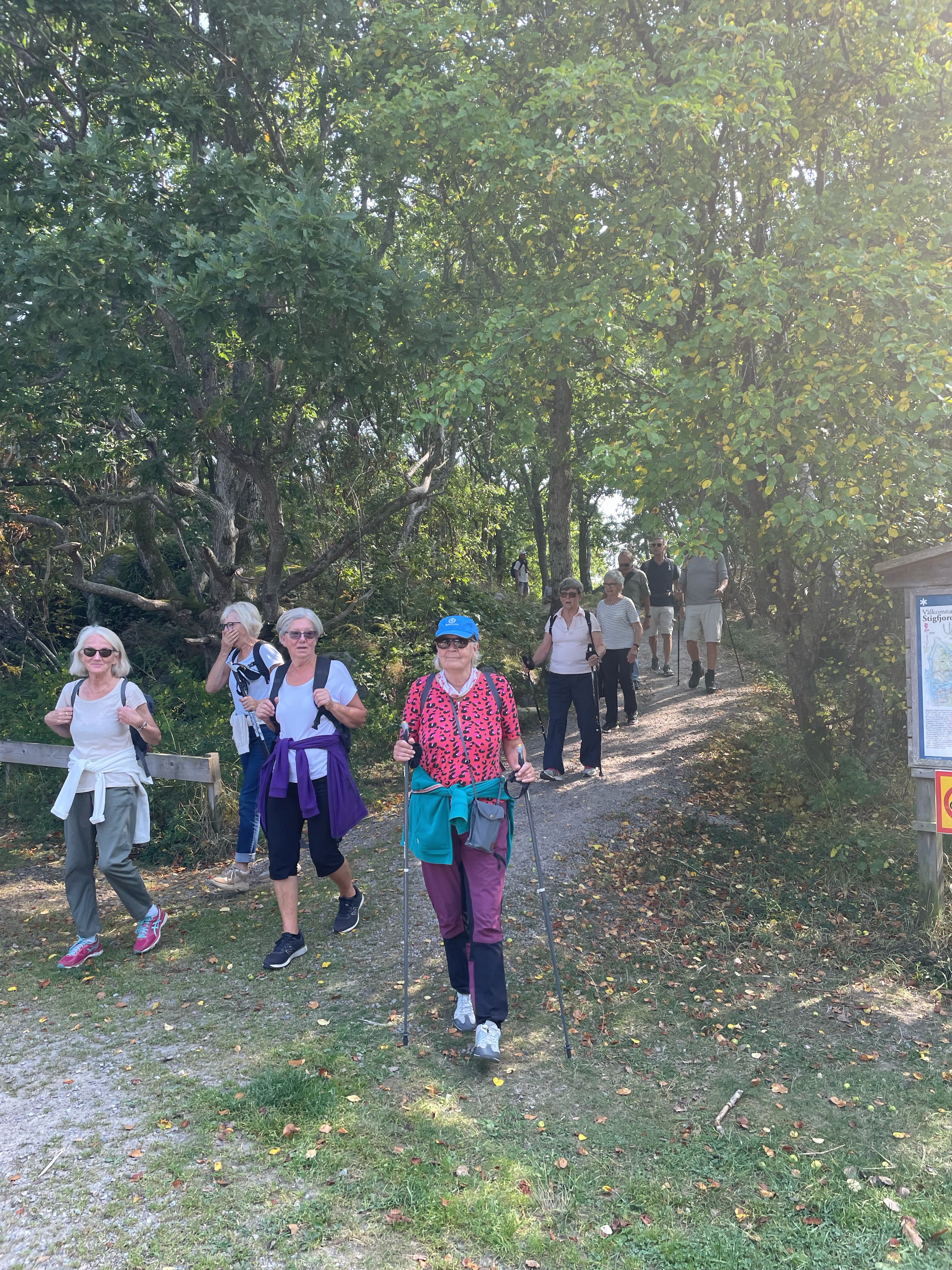 Denna varma, härliga septemberdag startade 28 förväntansfulla vandrare vid Toröds badplats. Denna plats var ny för många och lite krånglig att hitta. Promenaden gick på skogsstigar, ängar, strandängar och vägar. Under vår vandring kunde vi se både skog, hav och andra vackra vyer.