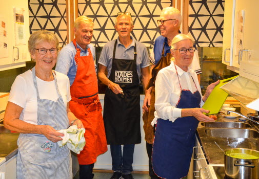 Under fem hösttisdagar har nio medlemmar lagat mat i Häggvallsskolan under Dagrun Trewes och Lennart Anderssons ledning. Några har deltagit tidigare år och några var nya i gänget. Vi lagade trerätters middag med temat ”Skandinavien” och åt gemensamt. God mat, många glada skratt och nya bekantskaper. Vi röstade fram tre rätter som våra höjdpunkter den här gången: grön ärtsoppa med oststicks, rimmad torskrygg med sandefjordssås och sparris, glasstårta med Nutella och maräng.