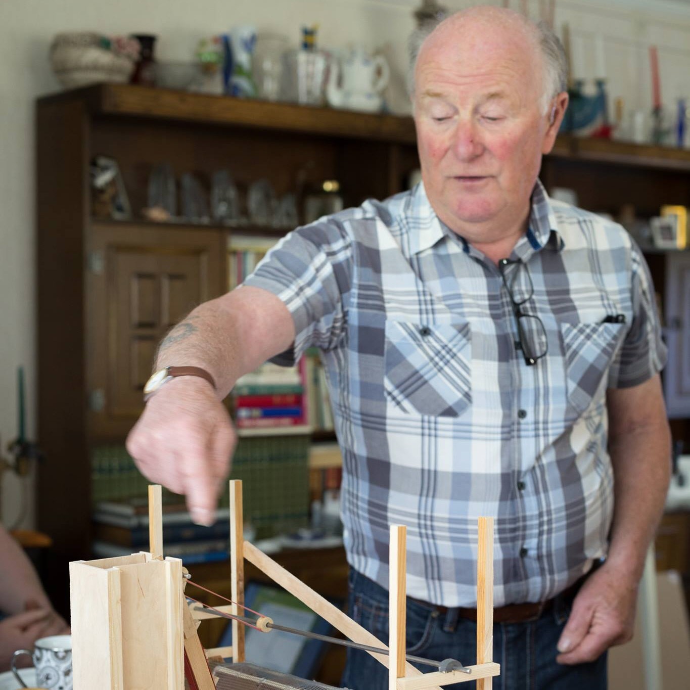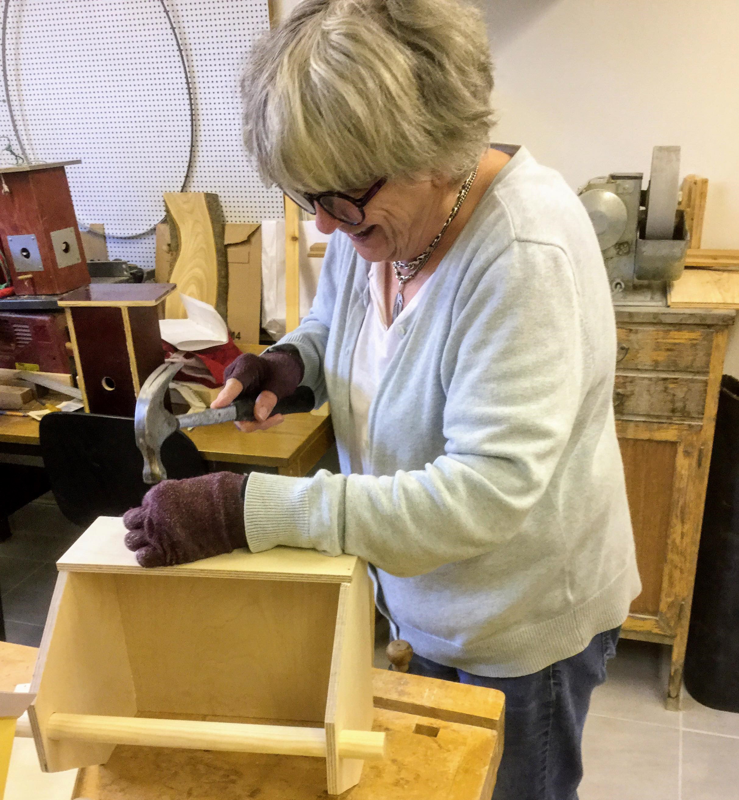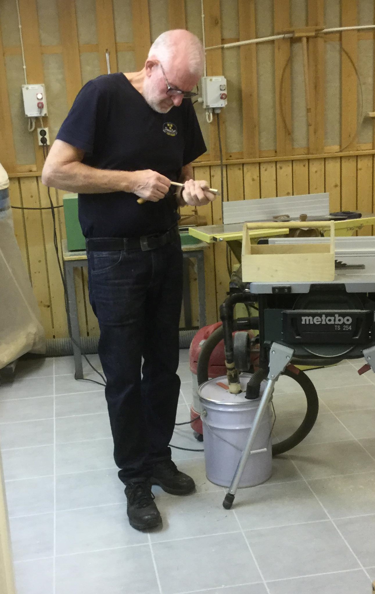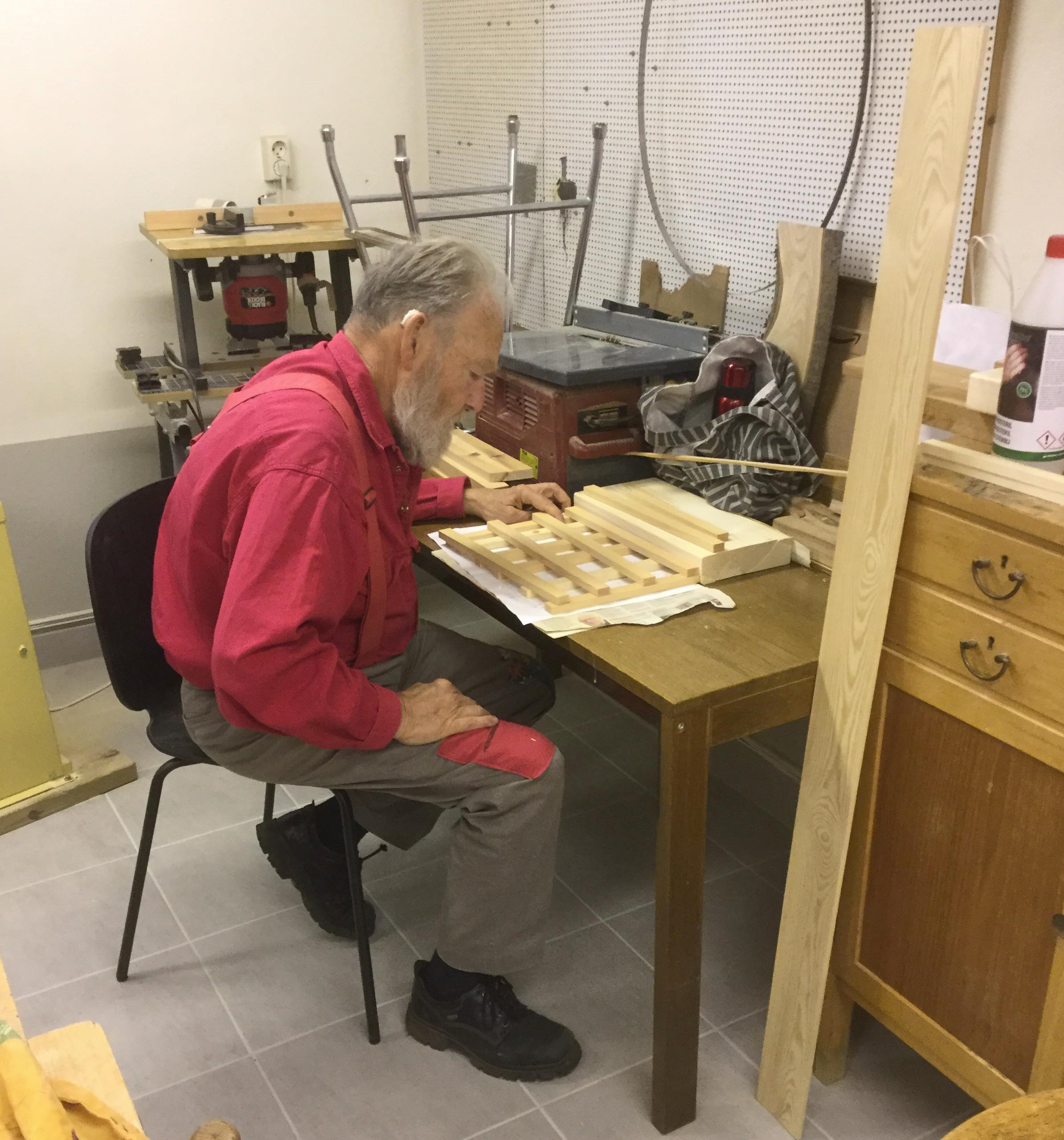 Sju Tjörnveteraner slöjdar varje tisdag i källaren på Tubberödshus Äldreboende. Med hjälp av bra ledarskap, verktyg och hög kreativitet har bland annat fina blomsterlådor, verktygslådor, Pinocchio dockor och galler för brödbak tillverkats.
