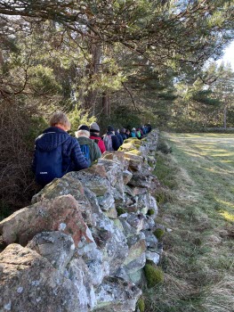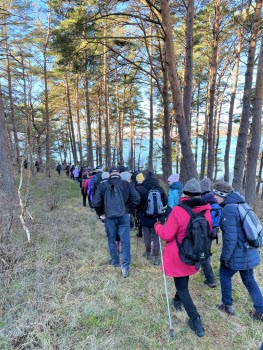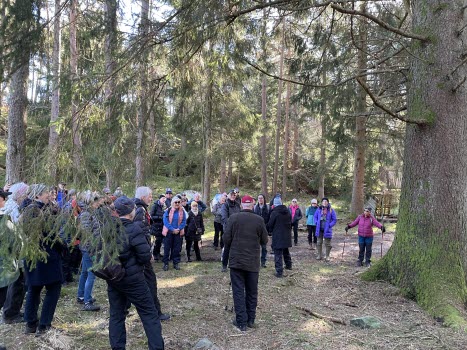 Bökeviken lockade 58 Tjörnveteraner. Ove Gustafsson ledde oss på vägar och stigar, under tiden berättade han lite historia om gamla torp, bosättningar och jordkällare. Han talade lite om personer som bott där. Vi var nere vid ”Smugglarviken” och fick höra historien om den. Under vandringen fick vi se bl a en mycket hög gran och en gärdesgård som var otroligt stor. Fika gjorde vi med utsikt över havet. Alla var nöjda och glada denna underbara soliga marsdag.