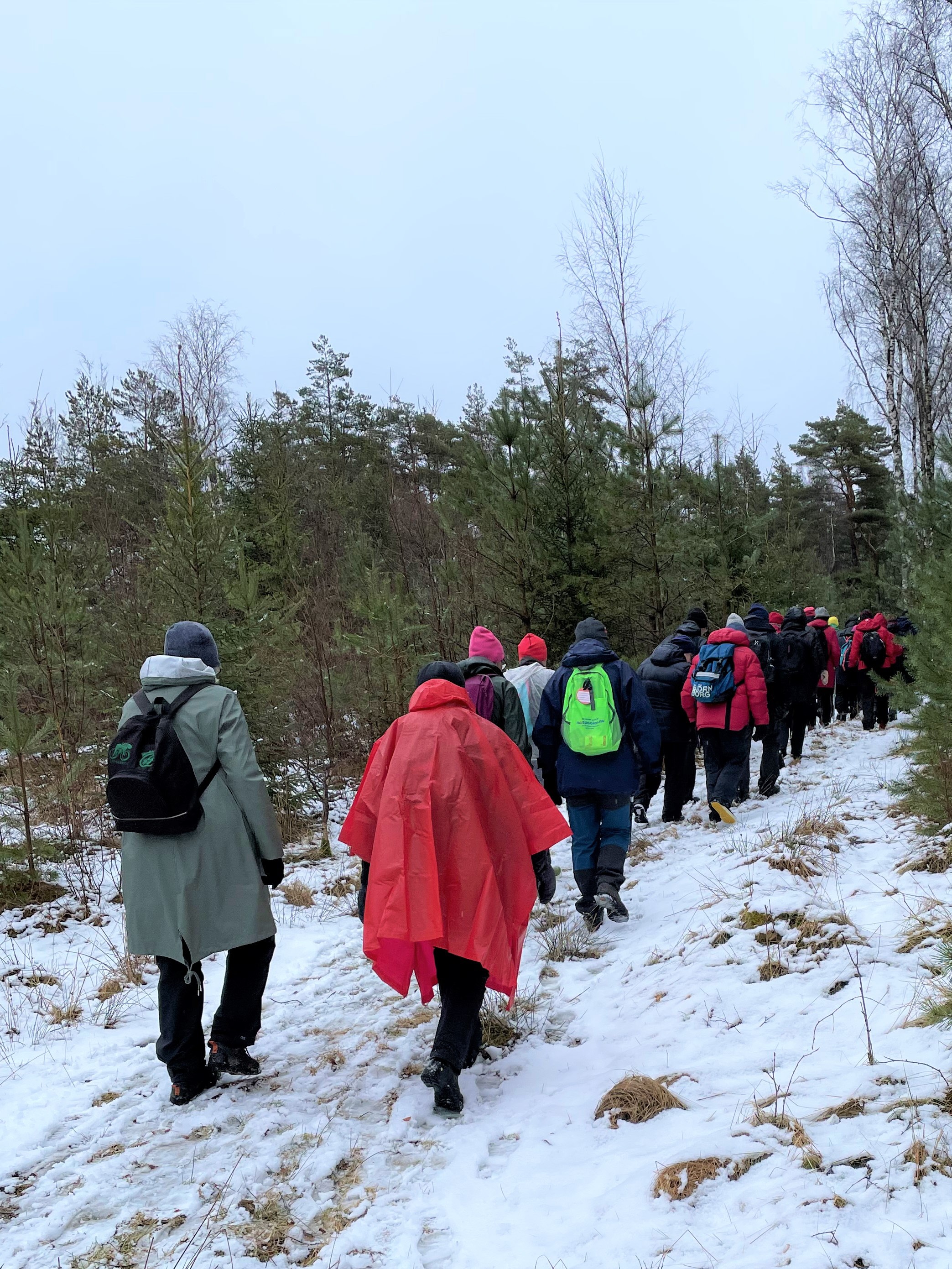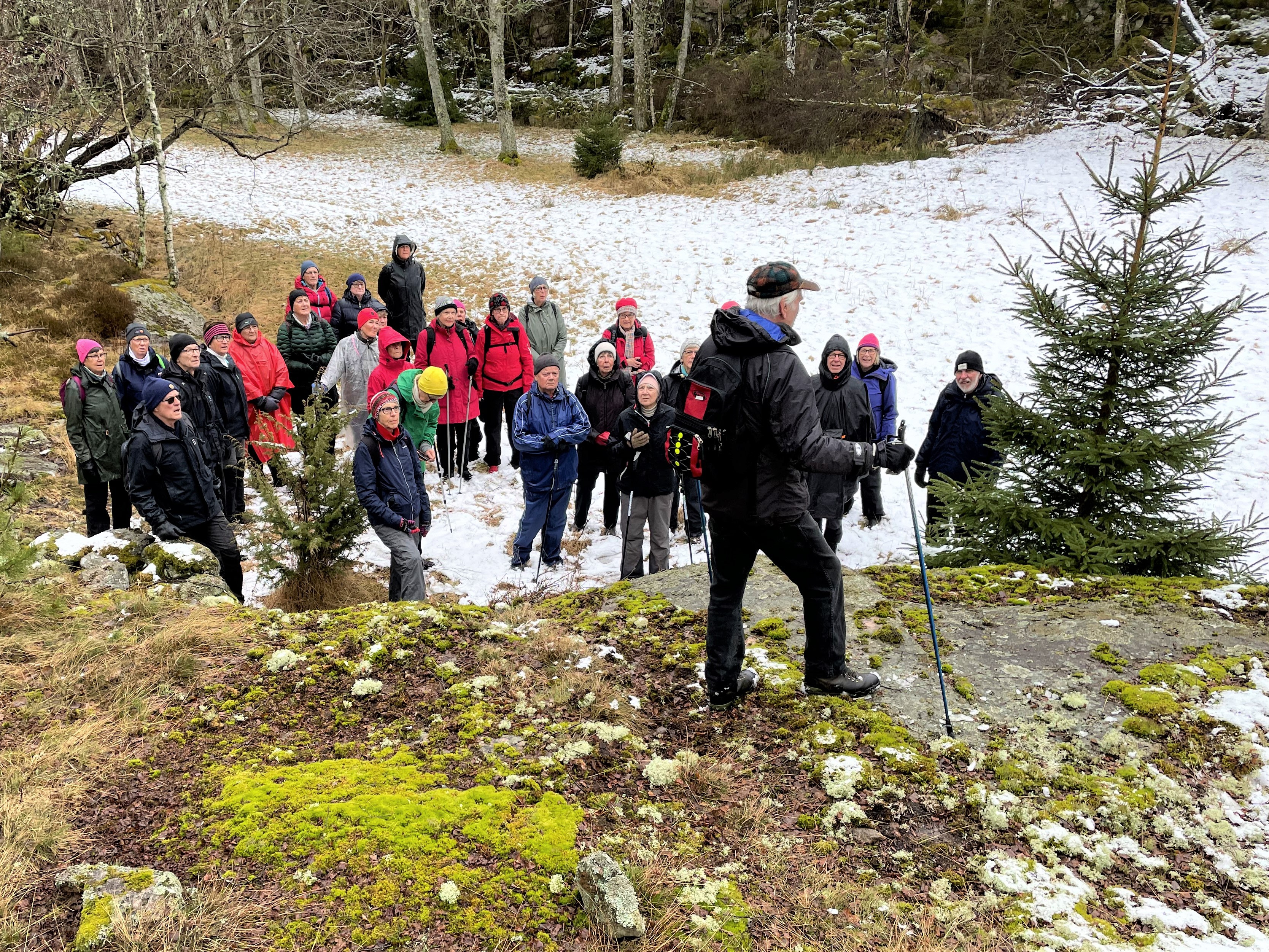 Idag var vi ändå 31 st tjörnveteraner som trotsade regnet. Vi gick från golfklubbens parkering till ”Tyftedamm” och runt omkring där i skogarna. Där guidade Jan-Inge Johansson oss och visade på gamla bosättningar och var kyrkvägen gick. Tillbaka till golfklubben var vi många som åt lunch.