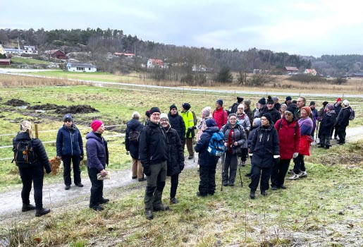 2023 års första vandring startade med en grillning i skogen på Kärrslätts Gård. Efter grillning och kaffestund vandrade vi bort mot Valsängs bostadsområde. Under promenaden stannade vi ett flertal gånger och där berättade Henry om platsens historik, bl a namn på olika berg, soldattorp, skola, affärer m m.