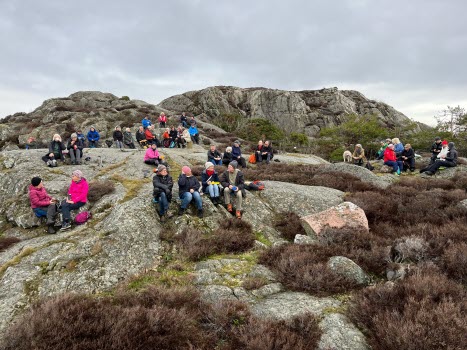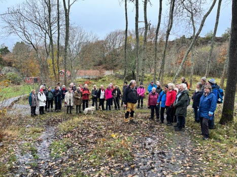 Från Pilane parkering startade idag 43 stycken Tjörnveteraner under uppsikt av Anna. Vi gick ner mot Hällene sommarstugeområde. Tog oss uppför trappor till en platå, där vi fikade. Därifrån kunde vi både se bort mot Skärhamn och Sunna strand. Vi gick sedan vidare mot Sunna - Gullfjäll - Långekärr. Under vägen passerade vi många igenbommade sommarstugor. Sedan gick vi upp till Pilane gravfält, där Anna hälsade oss välkommen tillbaka. Under promenaden såg vi flera historiska platser bl a Prästänkesätet i Sältebo, gamla fiskeläget ute på Halvorsholmen, Sunna strand trävaruaffär, snickerifabriken i Sunna. Vår promenad blev drygt 6 km idag. Även idag var vädrets makter med oss.