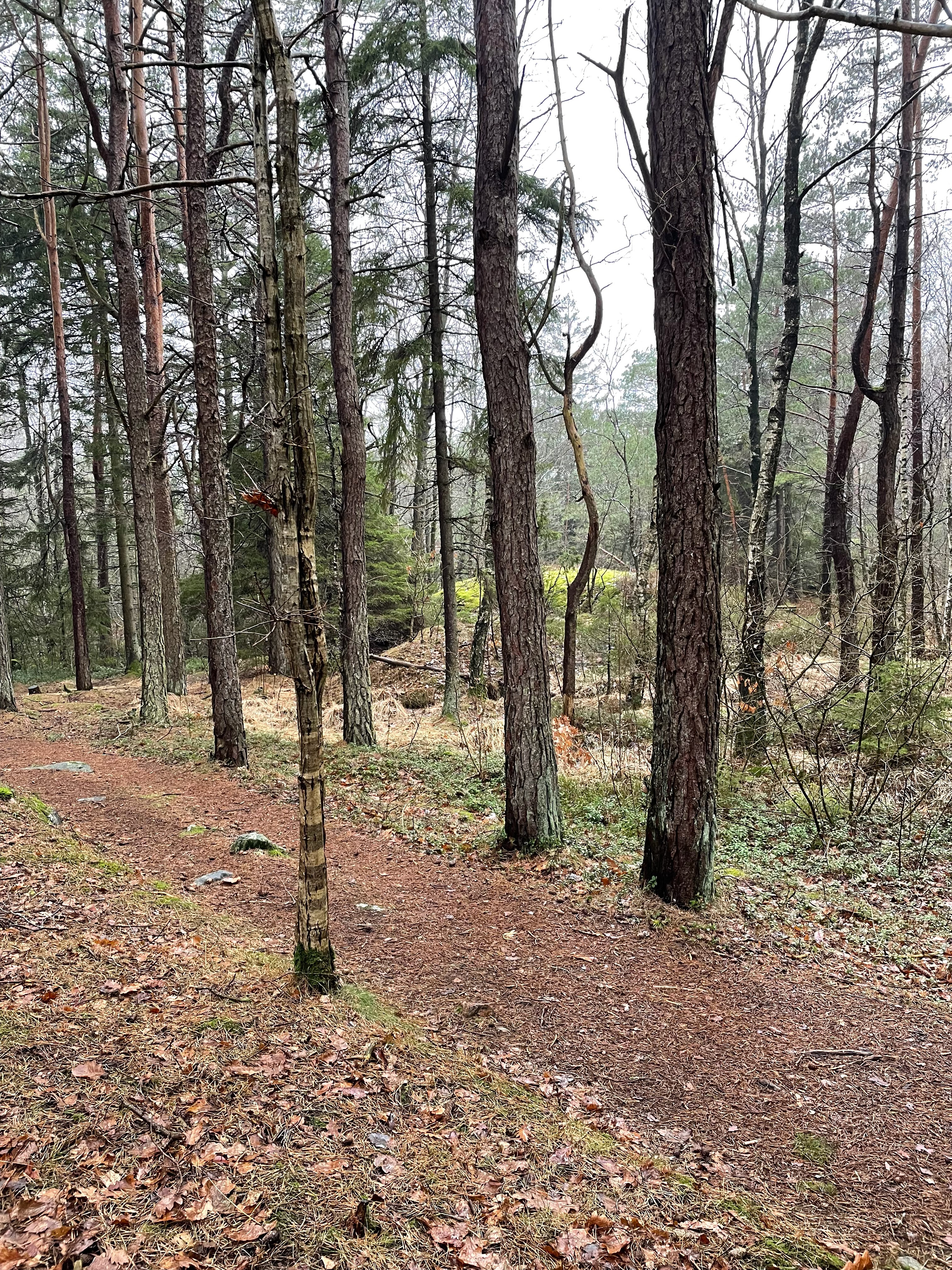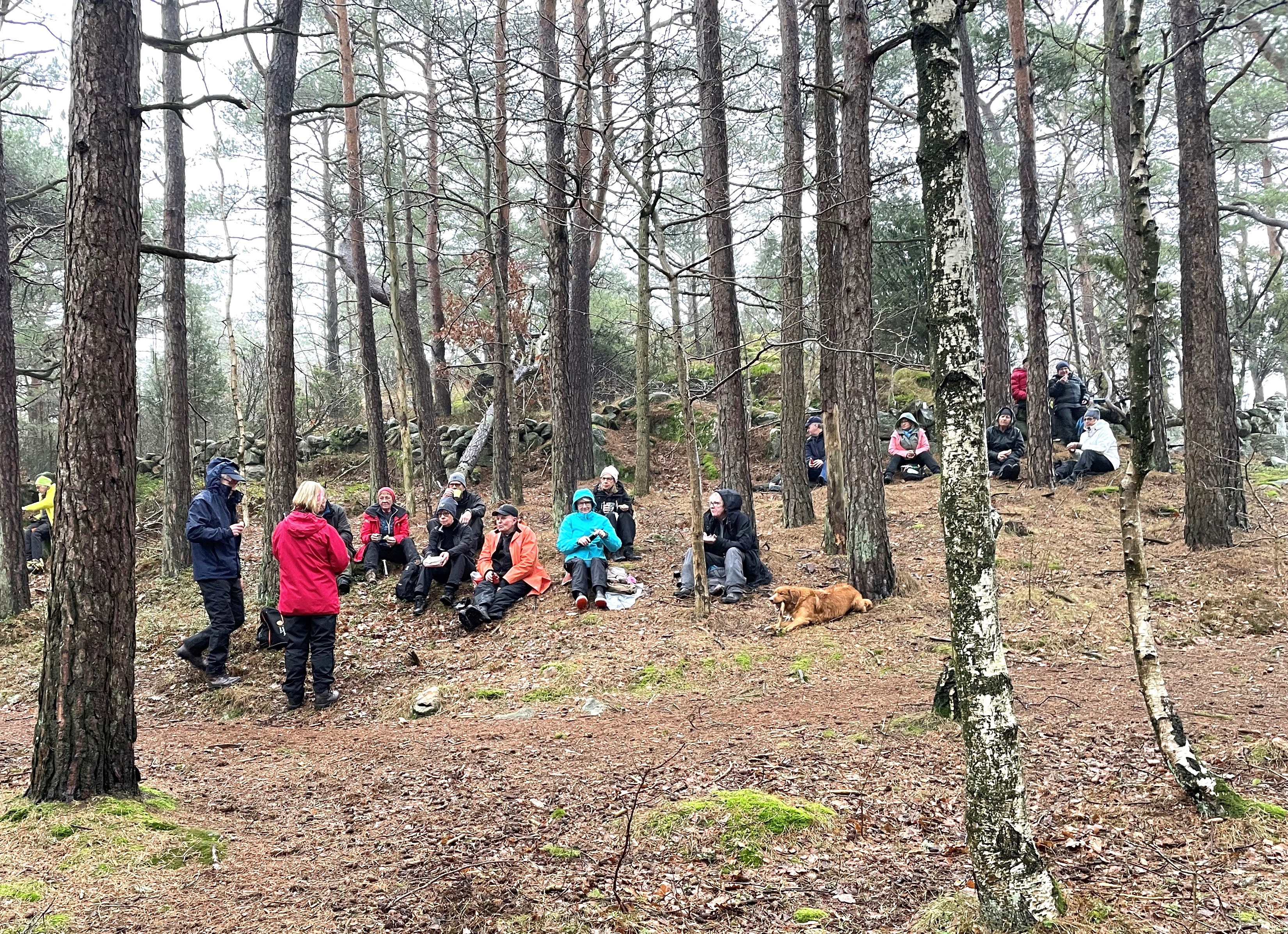 Från Kroksdalshallen startade 24 stycken tjörnveteraner vandringen mot Utäng. Vi gick på regnvåta vägar och stigar. Eftersom det på vissa ställen var vått och fullt med löv och rötter gällde det att se var man satte ner fötterna. Vi korsade vägen mot Märkesten för att ta oss upp mot Villekärr. Där i skogen tog vi vår sedvanliga fika. Sedan följde vi olika stigar runt i skogen och tog oss sedan tillbaka till Kroksdalshallen. Dagens vandring blev ca 6 km.