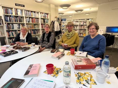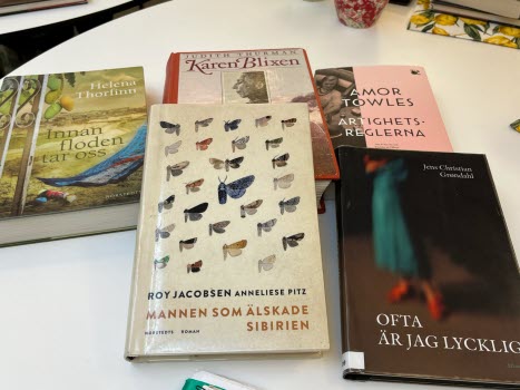 och dessutom ett utmärkt sätt att regelbundet träffas och delge varandra sina läsupplevelser, säger deltagarna i Tjörnveteranernas bokcirkel. Ingrid Andersson och Birgitte Fogh, cirkelledare, föreslår böcker inom olika genrer, som stimulerar till varierad läsning och diskussioner. Tips på böcker får man också från bibliotekspersonalen i Skärhamn, där man träffas vid fem tillfällen under våren. För dagen är lästipsen Artighetsreglerna av Amor Towles, Innan floden tar oss av Helena Thorfinn, Ofta är jag lycklig av Jens Christian Gröndahl, Mannen som älskade Sibirien av Roy Jacobsen och Karin Blixen av Judith Thurman.