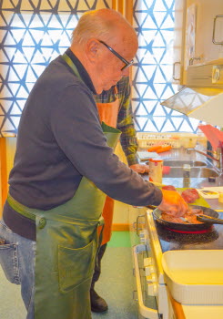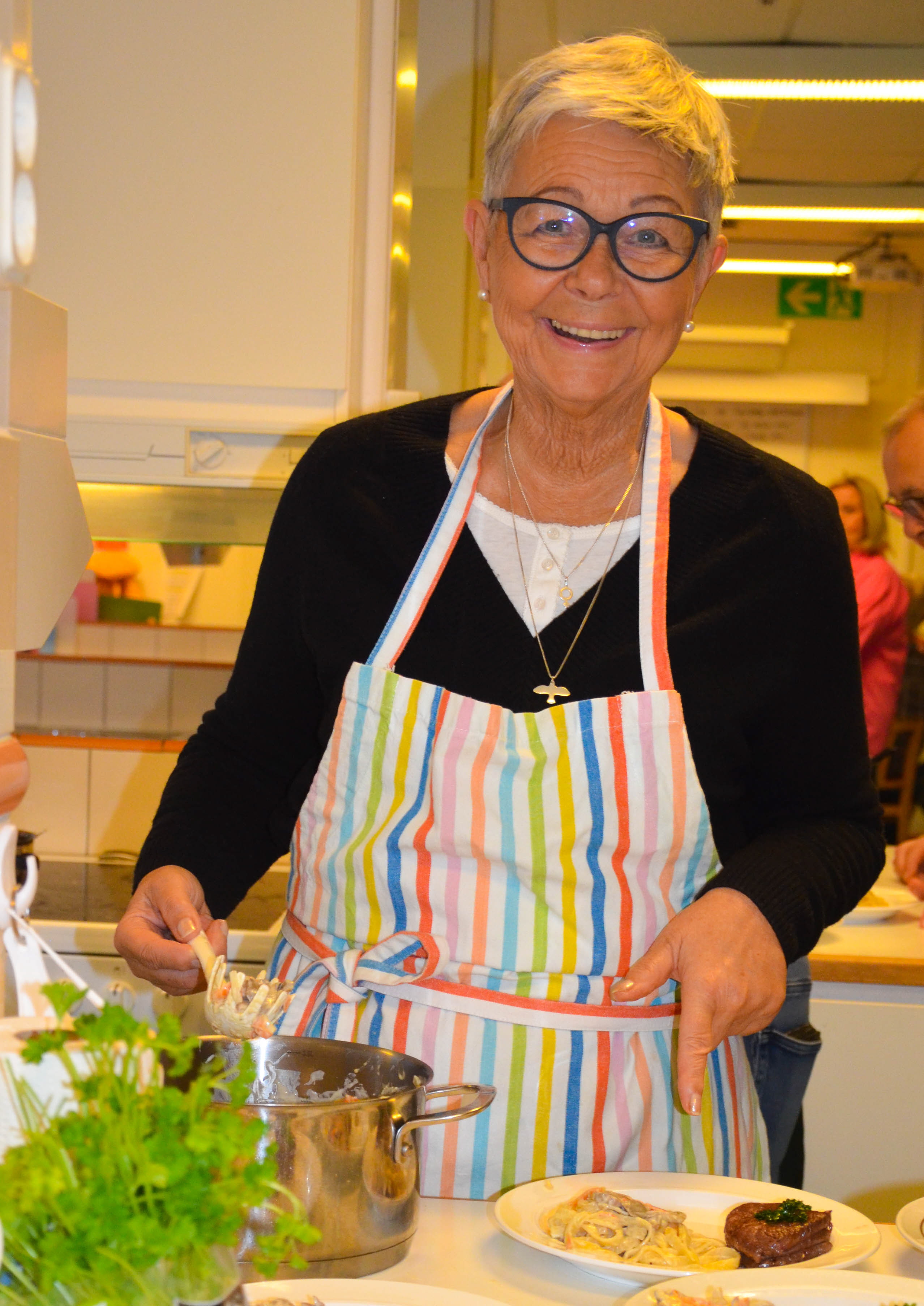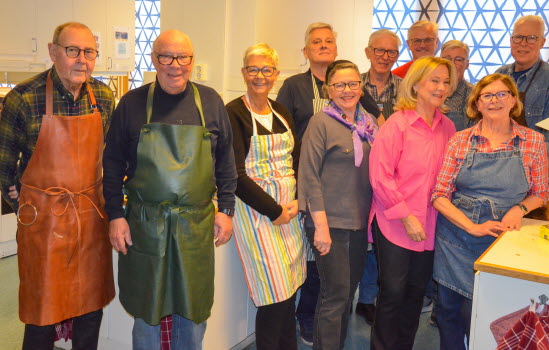 Under fem tisdagseftermiddagar har femton matglada Tjörnveteraner träffats i Häggvallskolans hemkunskapslokal och lagat trerätters nobelmiddagar och ätit gemensamt. Detta var elfte omgångens matlagning under ledning av Dagrun Trewe och Lennart Andersson. Sista gången för terminen röstades fram vårens bästa förrätt, huvudrätt och dessert. Förrätterna Kallrökt lax på spenatbädd med pocherat ägg samt Hummer-och räksoppa fick lika många röster. Bland huvudrätterna vann Rådjurs-/hjortrygg, champinjoner och akvavitsås. Den bästa desserten var Lingonparfait med bärsås och mandelkakor.
