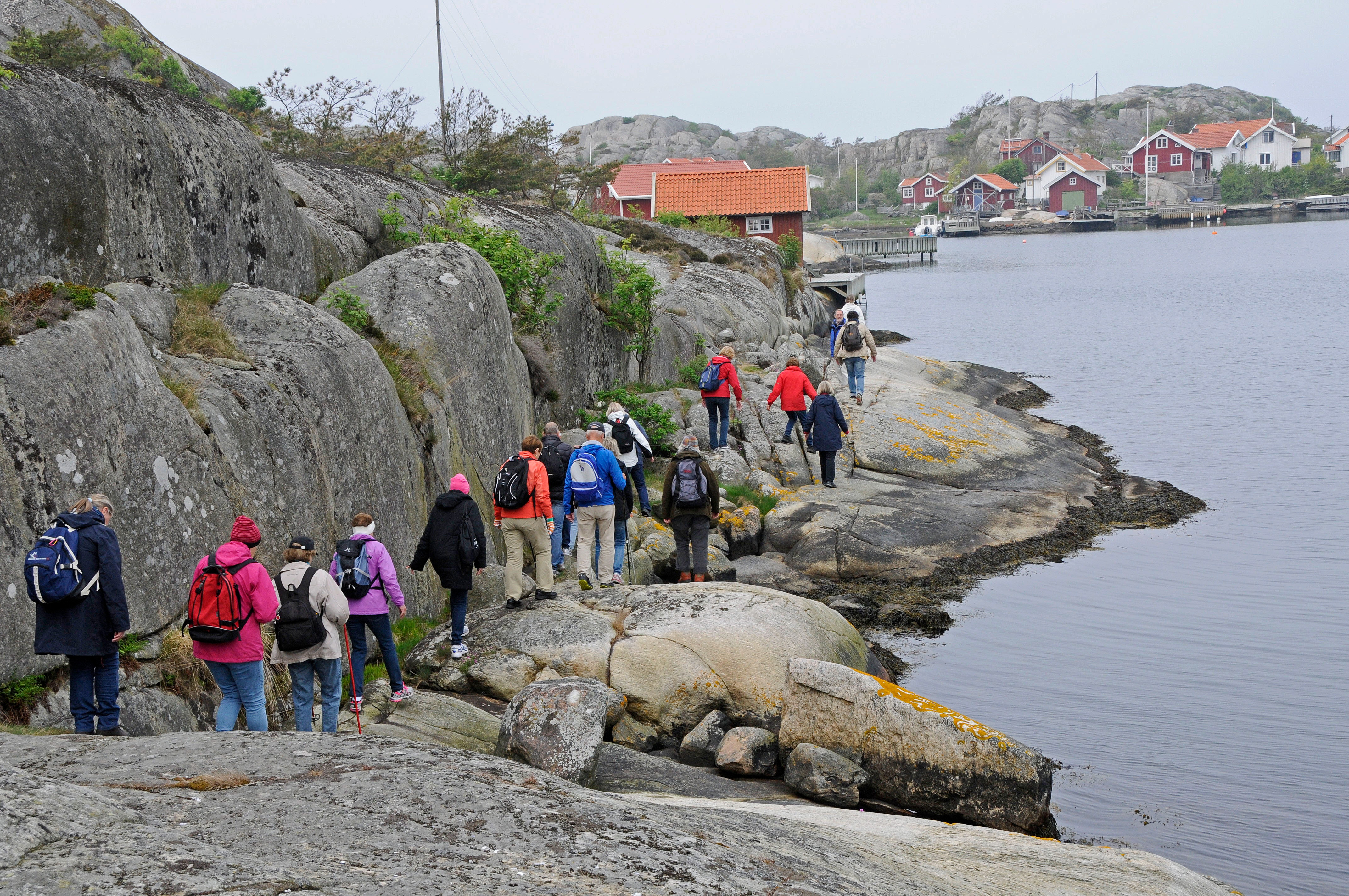 Vårens fjärde kulturvandring utgick från Rönnängs brygga och hade lockat ett tjugotal medlemmar. Västtrafiks färja tog oss över sundet via Åstol och Stora Dyrön till Tjörnekalv. Ön har två bebyggelser, Storekalv och Lillekalv, som båda är gedigna kulturmiljöer. Florence Karlsson, fritidsboende på ön, berättade om öns historia och bebyggelse. Promenaden gick längs havet från Stora till Lilla ”Kalven” och tillbaka till färjan genom ”gammelskogen”. Artrikedomen på ön är stor, både vanliga och ovanliga växter går att hitta. Nu blommade gullvivan (majnycklar på bygdemål) och triften för fullt. Både natur- och kulturmiljön är av riksintresse och högst upplevelsevärd.