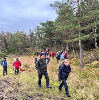 Torsdagens vandring startade hos Sven och Märta Johansson i Bö. Vi var 37 stycken seniorer som trotsade den starka vinden och traskade upp till Torpet.Vägen bestod delvis av både lera, vattenpölar och även spår av betande djur. När vi kom upp till Bö tjärn tog vi till höger för att runda berget. Uppe vid Torpet var det lugnt och fint att sitta och fika. Därefter tog vi den andra vägen tillbaka till bilarna. Även om det blåste friskt så kunde vi njuta av den vackra naturen. Sträckan blev ca 6 km idag.