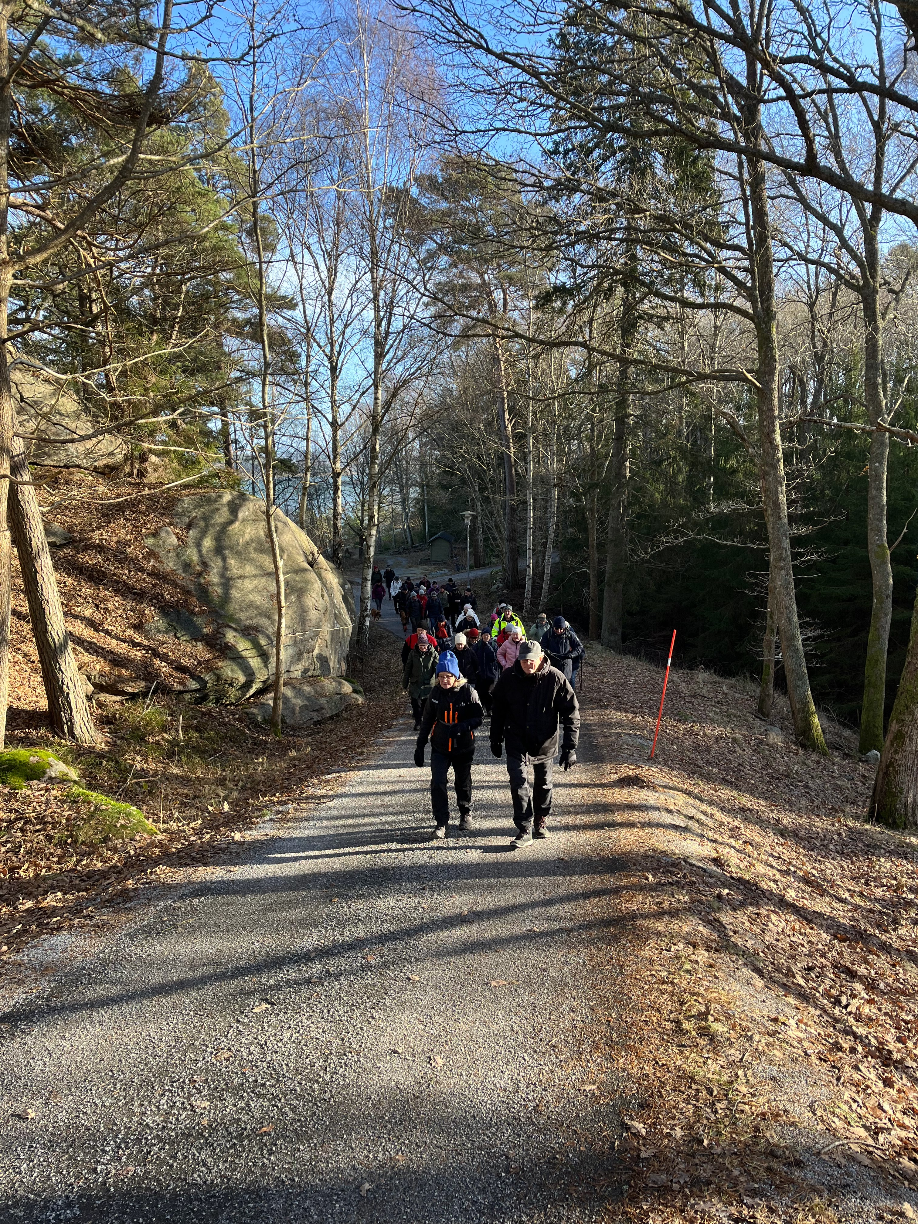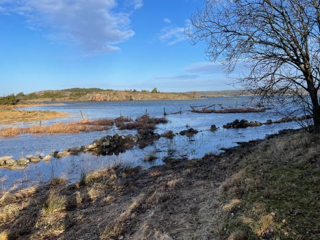 Stormen ven och solen sken när 40 stycken Tjörnveteraner startade dagens vandring från Skåpesund. Vi tog vägen ner mot vattnet, följde strandängarna fram till Västra Näs. Det var mycket högt vatten i Stigfjorden och vinden piskade oss i ansiktet. När vi kom fram till den gamla landsvägen vid Källdalen tog vi en välförtjänt kaffestund i solskenet. Där var det lugnt och skönt. Vi fortsatte sedan genom kotunneln och skogsvägen upp till Ögärdet och vidare till bilarna. Vi fick lite information om bl. a. gamla färjeläget och om den gamla och nya bron. Sträckan vi gick idag blev ca 6 km.