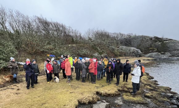 Denna gråmulna dag kom 38 Tjörnveteraner till Toröds badplats parkering. Promenaden gick först till stranden där ett trankokeri fanns en gång i tiden. Därefter följde vi stigar och vägar fram till fornborgen i Viks kile. Där blev det fikapaus. Sedan fortsatte vi vägen fram och passerade ett hus från 1700-talet. Vandringen gick vidare på bilvägen och vid Byvägen vek vi av och följde den fram till Sjögången och ner till strandängarna. Där kunde vi skymta Valsängs sjöbodar i diset. När vi kom tillbaka till bilarna så tog vi oss en kort tur till badplatsen. Dagens vandring blev cirka 5 km.