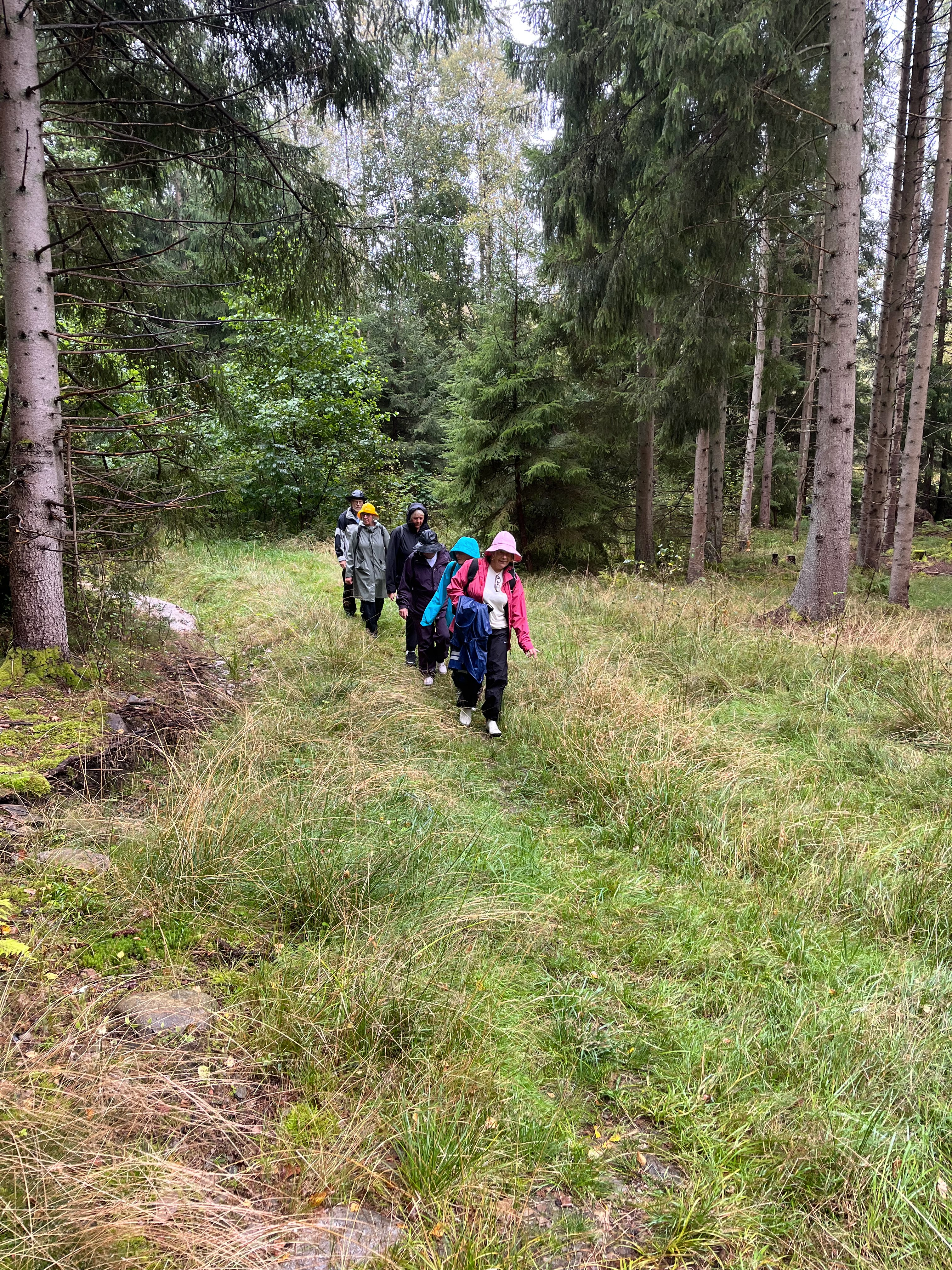 Från kyrkogårdens parkering på Stora Askerön startade 7 Tjörnseniorer dagens vandring i regnet.