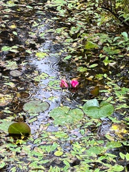 Under vandringen passerade vi en damm med lite näckrosor i.