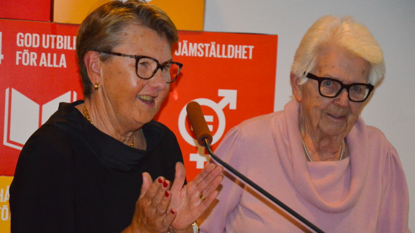 Margareta Andersson avtackade de avgående styrelseledamöterna Birgitta Rutgersson och Jan Magnusson (ej närvarande).