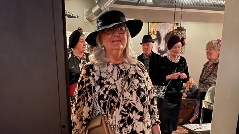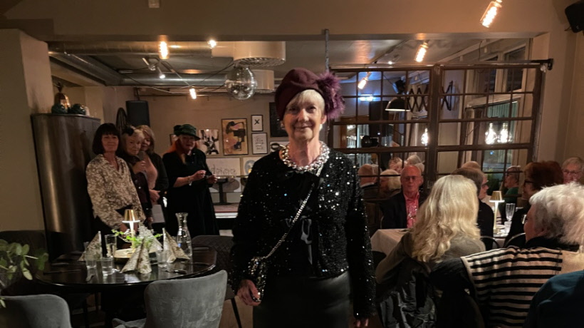 Vår vackra uppklädda konferencier Gunnel Janlars hälsade välkommen och berättade om kvällens program. Tillsammans med berörda affärer Solblomman, Einars skor och Hattityden som hade sina representanter här för att presentera kläderna, skorna och hattarna till publikens jubel.