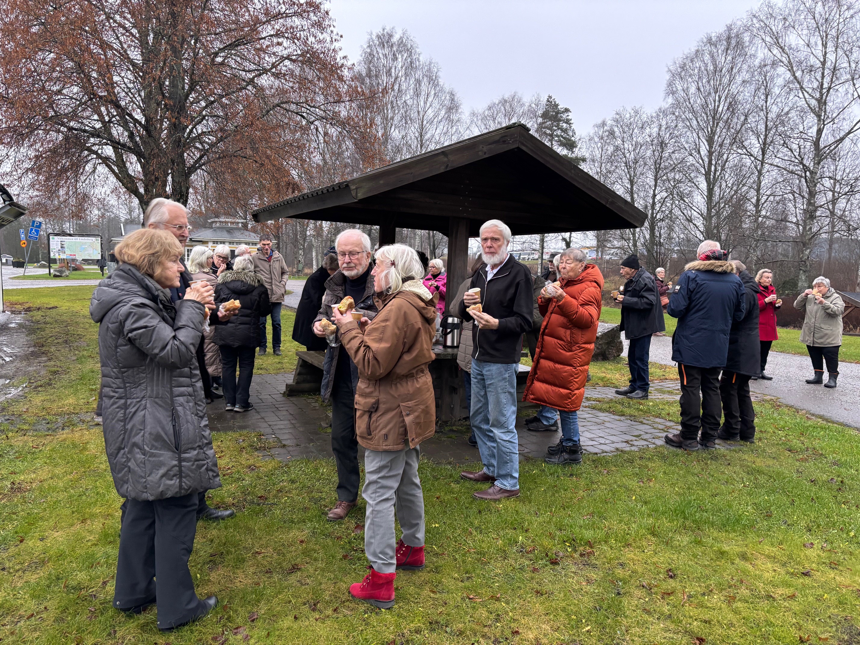 En tidig morgon i december när vädret inte var på sin bästa sida begav vi oss iväg med buss till julmarknaden tillsammans med medlemmar från våra grannföreningar. På ditresan gjordes ett fikastopp och vi bjöds på kaffe/té och smörgås.