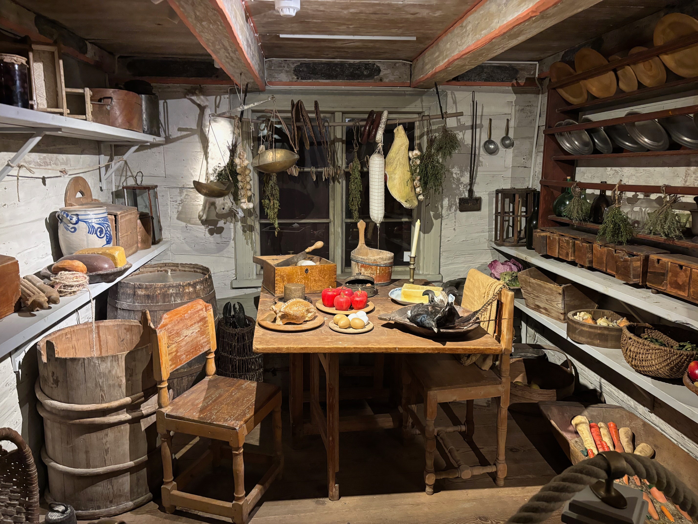 Väl framme försågs vi med en karta med besöksinformation. Vi strosade runt och kunde fynda bland traditionellt julpynt av god kvalité och handla korv, ost och annat ätbart av lokala producenter. Intressant att se Cajsa Wargs skafferi liksom Hjalmar Bergmans muséum. Positivhandlaren spelade på sitt gamla vevpositiv och vi kunde lyssna till julsånger. Var man inte intresserad av att fynda kunde man nöja sig med att studera folklivet och den fina miljön. Restaurangen Gamla Örebro bjöd på en utsökt lunch.