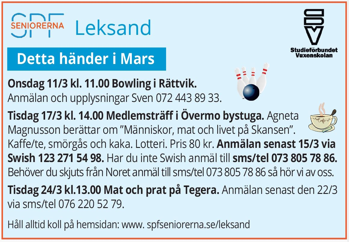 Onsdag 11/3 kl. 11.00 Bowling i Rättvik.