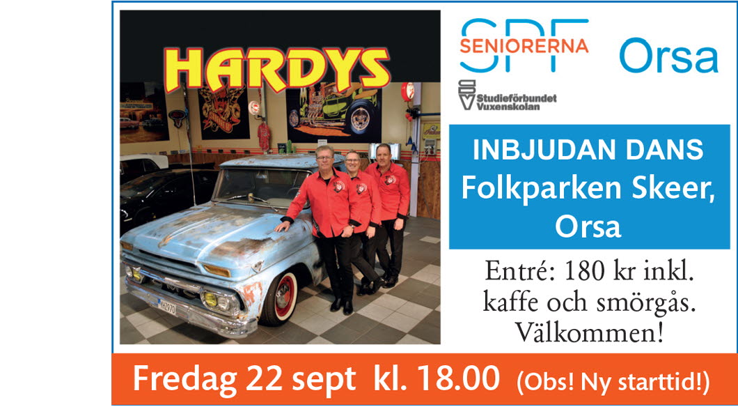 Fredag 22 september kl 18.00 blir det dans på Folkparken Skeer i Orsa till HARDYS