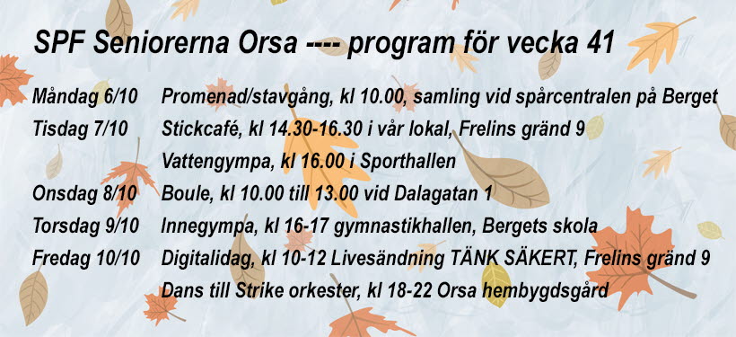 SPF Seniorerna Orsa program för vecka 41