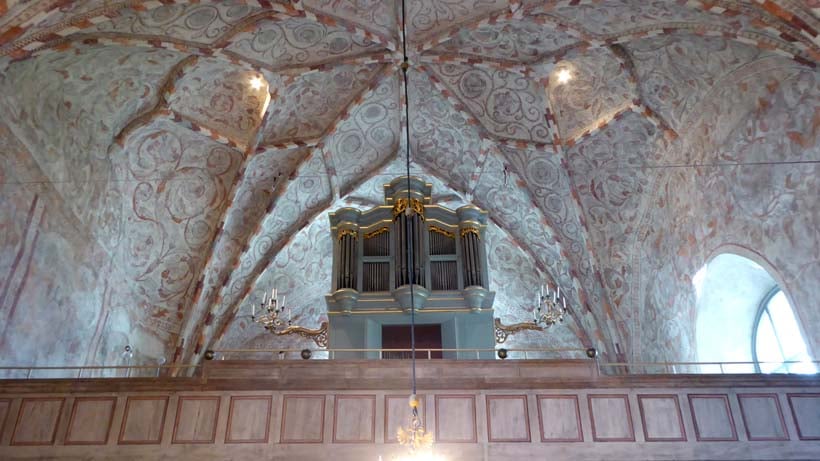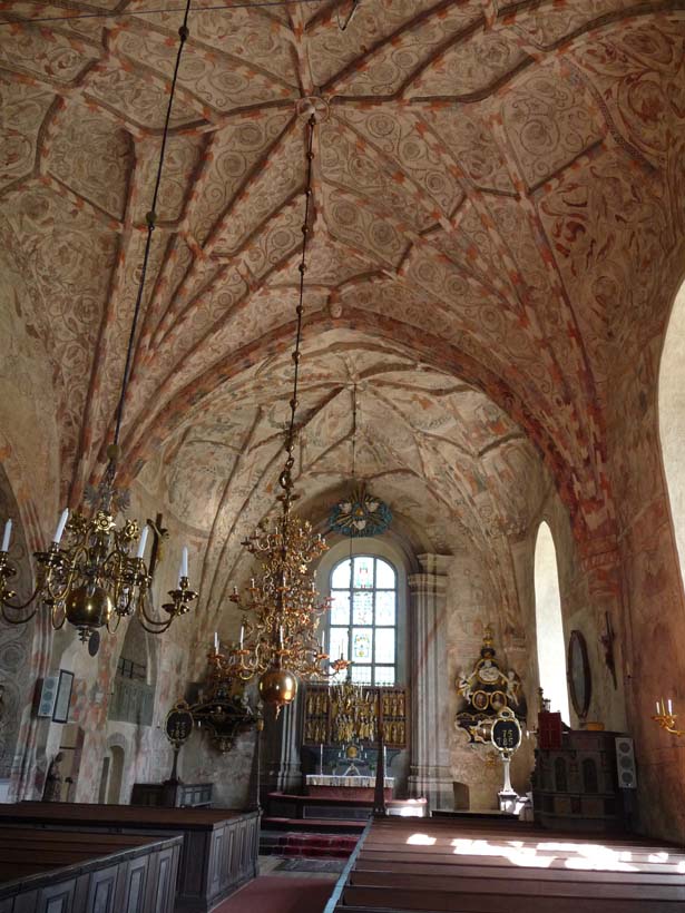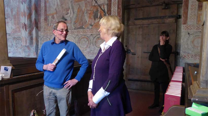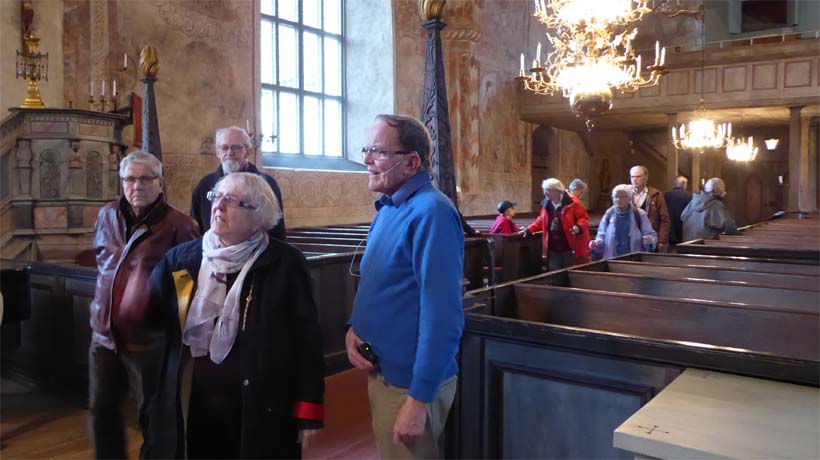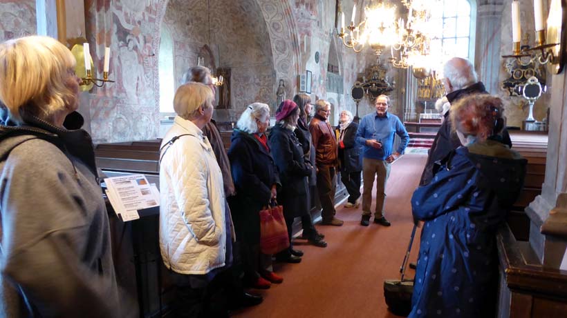 Det var Margaretha Barkevall Lindborg som ordnat att den numera pensionerade kyrkvaktmästaren Sigge Sahlander, som hon kände sedan gammalt, visade och berättade om kyrkan. Kyrkan är en upplevelse med sina gamla kalkmålningar från golv till tak.