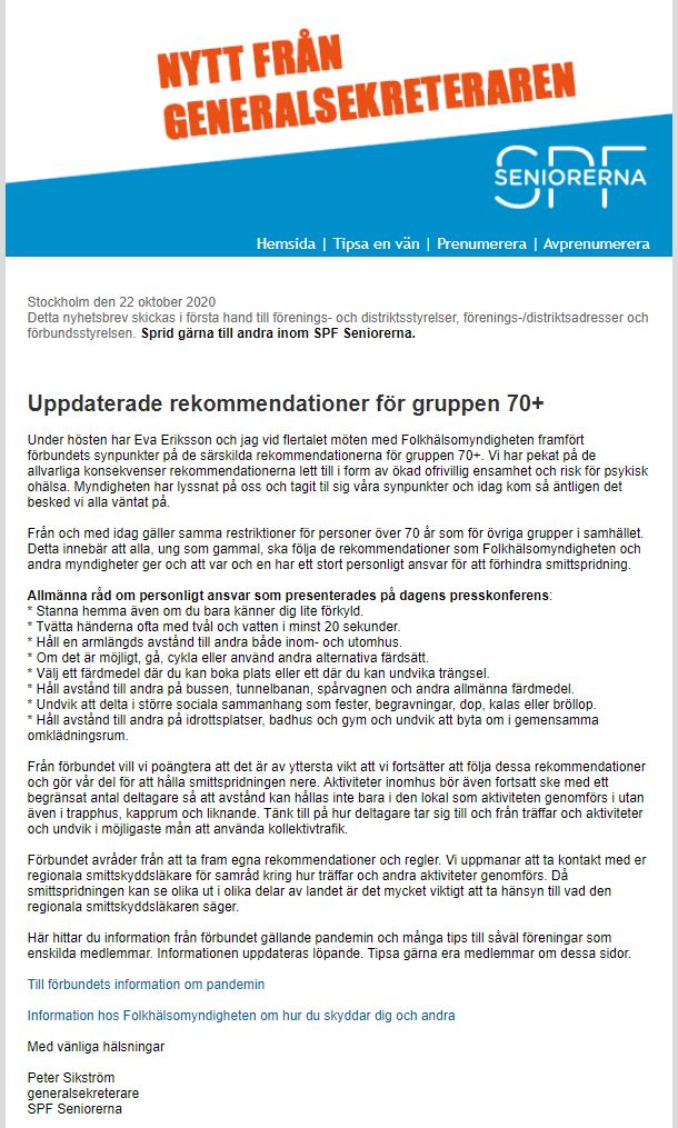Gå in på www.senioren.se så får ni fler nyheter från SPF