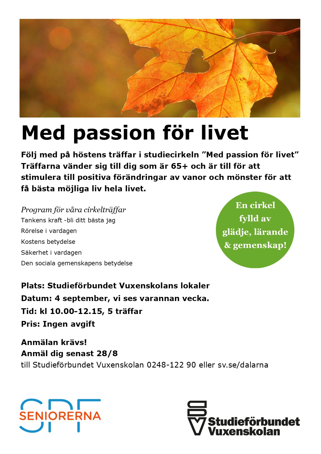 Anmäl dig till studiecirkeln Med passion för livet!