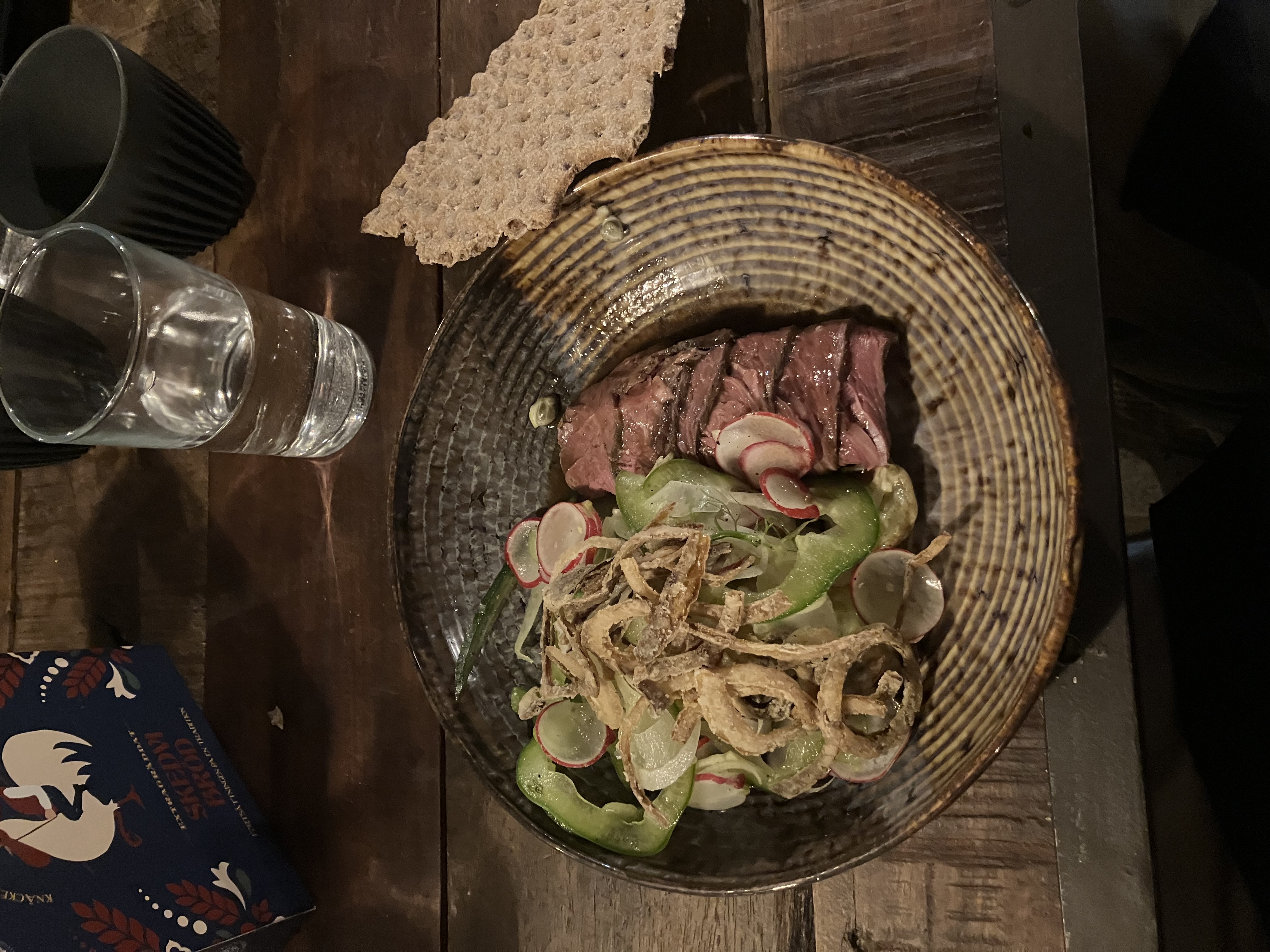 Vi bjöds på rostbiff från Pollacks gård med ljummen potatissallad, skysås & friterad lök. Så trevlig och fin miljö för trivsel och umgänge. God mat och trevlig personal.