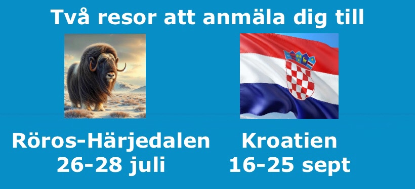 Här är två resor som du just nu kan anmäla dig till. Läs på Resesidan.