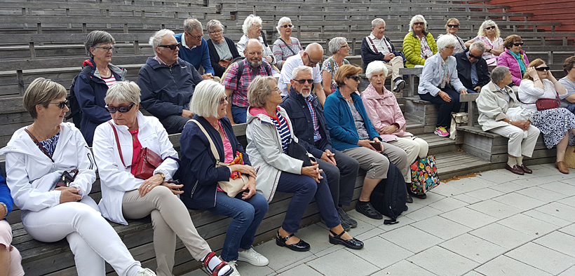 Måndagen den 17 juli steg 50 glada pensionärer på bussen i Falun för vidare transport till Örebro, där vi steg ombord på MS Gustaf Lagerbjelke. Solen sken när vi lämnade kajen i Svartån och vi fick en vacker färd nerför Svartån där vi var med om både broöppning och slussning. Kapten berättade under färden om de olika sevärdheter som vi passerade. Väl ute på Hjälmaren blev vi serverade en mycket god lunch bestående av lax, potatis och en härlig sås. Stämningen på båten var god och på grund av lågt vattenstånd så hade vi bottenkänning några gånger till allas förskräckelse.
