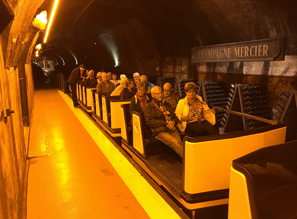 Vi besökte också Mercier som är en av Frankrikes större Champagne leverantörer och åkte med ett tåg genom deras underjordiska vinkällare. Champagnehuset Mercier var tidigt experter på att skapa uppståndelse och utnyttja tillställningarna till fullo. För utställningen i Paris 1889 tillverkades en vintunna i ek, stor nog att rymma 200.000 flaskor Champagne. Med hjälp av 24st oxar släpades denna till Paris från vingården i Epernay.