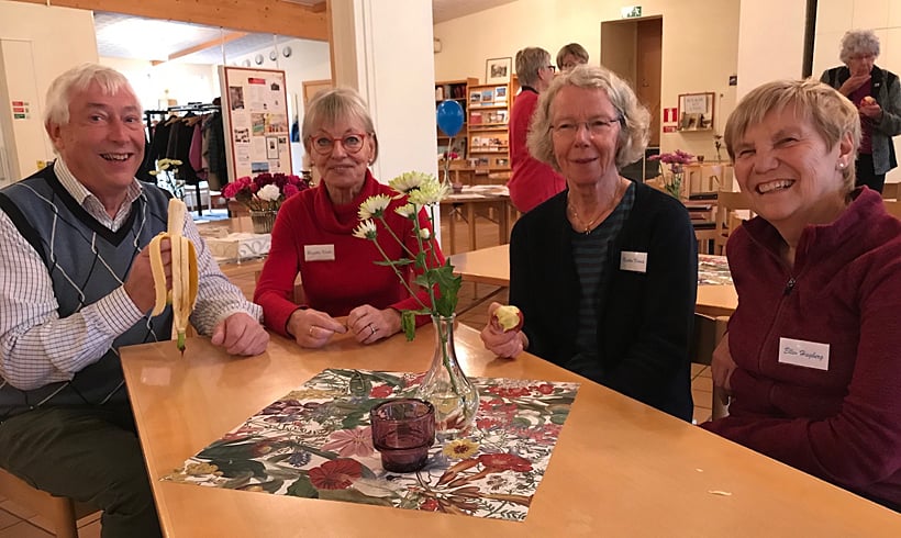 "Jag träffar så många trevliga och positiva människor här. Kommer hit och är lite trött men dansar när jag går härifrån, med ett leende på läpparna", säger Birgitta Klahr som sjunger sopranstämman.