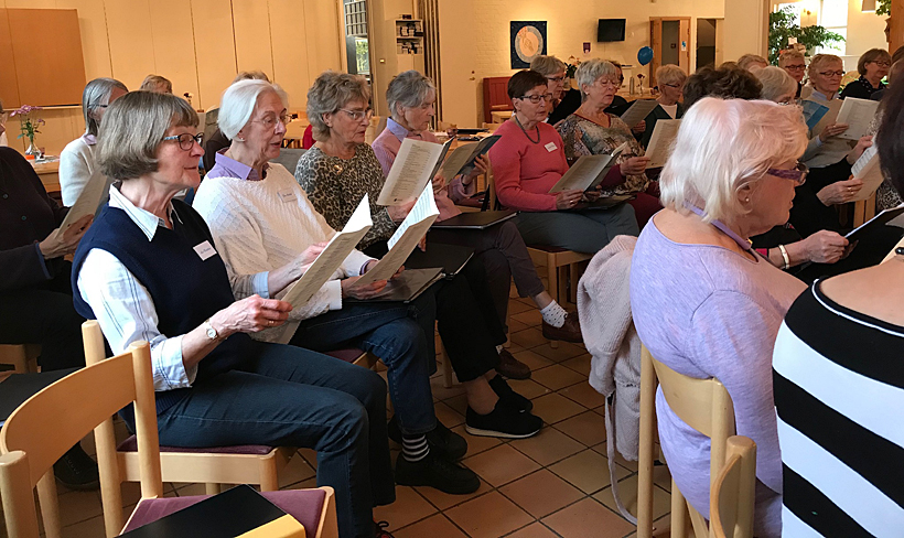 Det hörs spännande och vacker sång från Nybrokyrkan varje tisdag eftermiddag. SPF Seniorerna Faluns egen kör övar. Mats Bergman, ansvarig för körverksamheten, berättar att kören är fyrstämmig och just nu består av 8 basar, 5 tenorer, 11 altar och 20 sopraner. Kören behöver fler basar och tenorer, säger Mats.