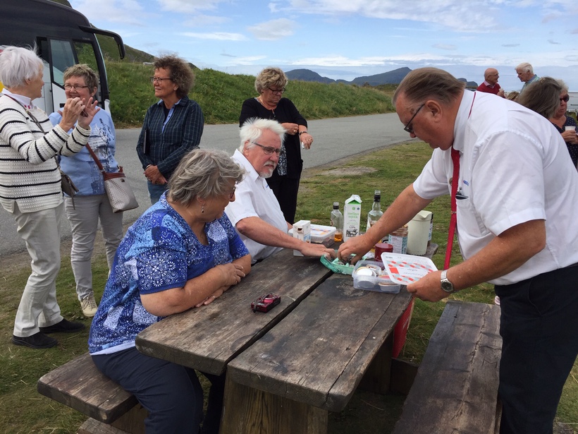 På väg igen, nu mot Norge och Lofoten dit vi väntas komma till lunch. Från bussfönstret ser vi en fantastisk natur med solen som skiner på de snöklädda topparna från en klarblå himmel. Eftermiddagen fri i Svolvaer där vi bor två nätter. Gemensam middag på kvällen. En dag på Lofoten med guide. Lofoten är en ögrupp norr om polcirkeln. Öarna har "fast" förbindelse med varandra och fastlandet via ett antal broar och tunnlar. Vi gör naturligtvis lunch- och fikastopp innan vi är åter på hotellet. Hotellet i Svolvaer erbjuder en fantastisk frukost där absolut ingenting saknades, synd bara att man inte är en hamster.
