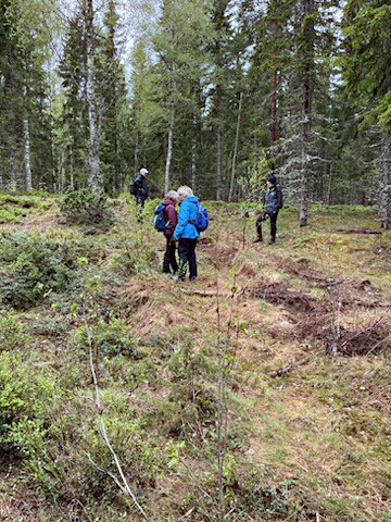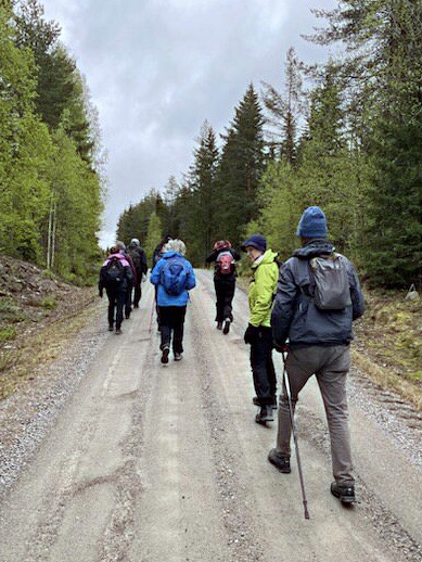 Vi var 10 vandrare som var med idag. Under natten hade det kommit mycket regn och det var ca 5* VARMT! idag. Så vi hade tagit på oss bra med skor och kläder för att hålla värmen och inte bli blöta. Och vi klarade oss, det kom inget regn och vi gick i en bra takt! Vi gick längs grusvägen till att börja med, sedan genom skogen där en skogsmaskin gjort spår och kom sedan fram på vandringsleden som är en del av Vattnets väg till gruvan.