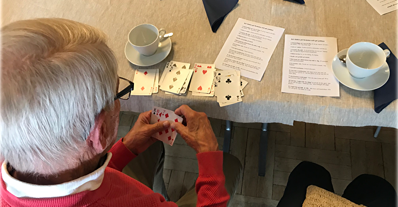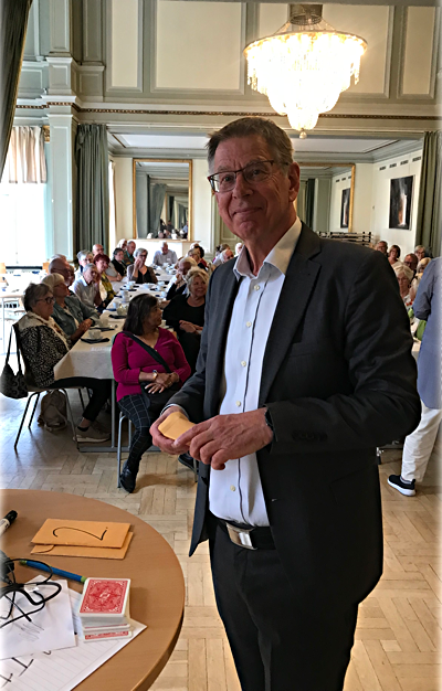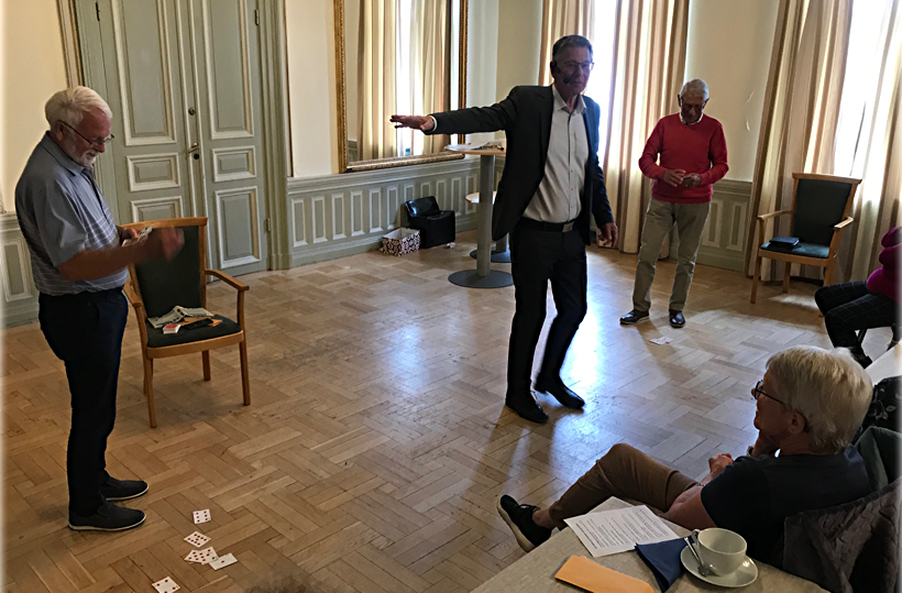 Han kunde också tala om vilket kort vi tänkte på och delade kort för kort upp hela leken mellan två stressade herrar som inte sorterat högarna riktigt rätt.