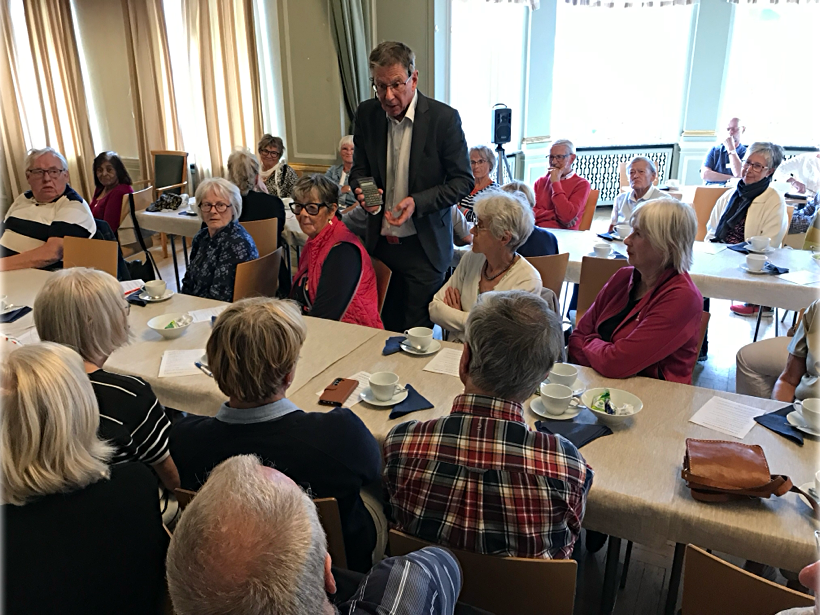 Husgruppen bjöd dagen till ära på kaffebröds- och tårtbuffé. Det förstärkte ytterligare de positiva budskap Lennart förmedlade.