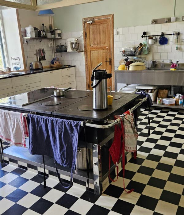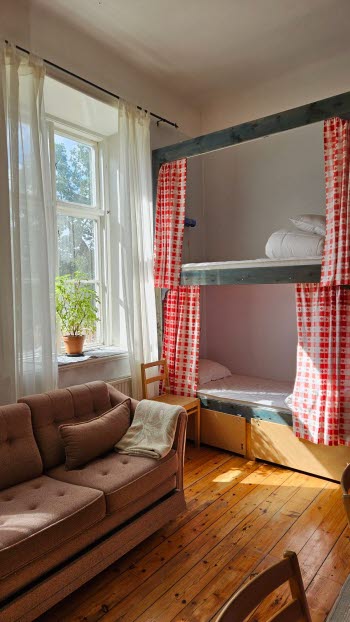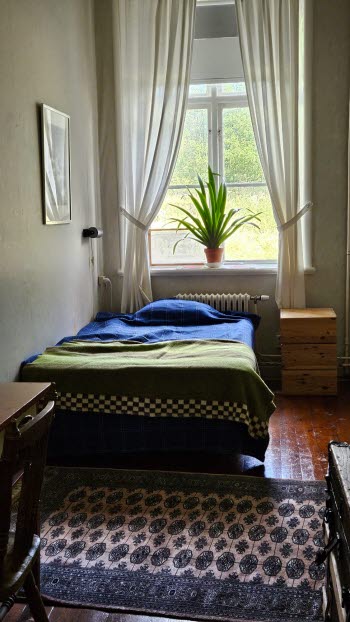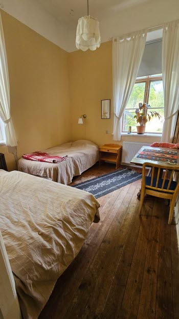 Halva övervåningen är den privata delen där dessa hyresgäster har sina rum. På andra halvan finns rum för kursdeltagare, med enkelrum och rum upp till 10 gäster (med våningssängar). I övrigt finns gemensamma utrymmen såsom matsal, kök, bibliotek, "biosalong" uppbyggd med gradänger och sköna soffor och rum för olika aktiviteter kopplade till de olika kurserna och evenemangen som hålls där.