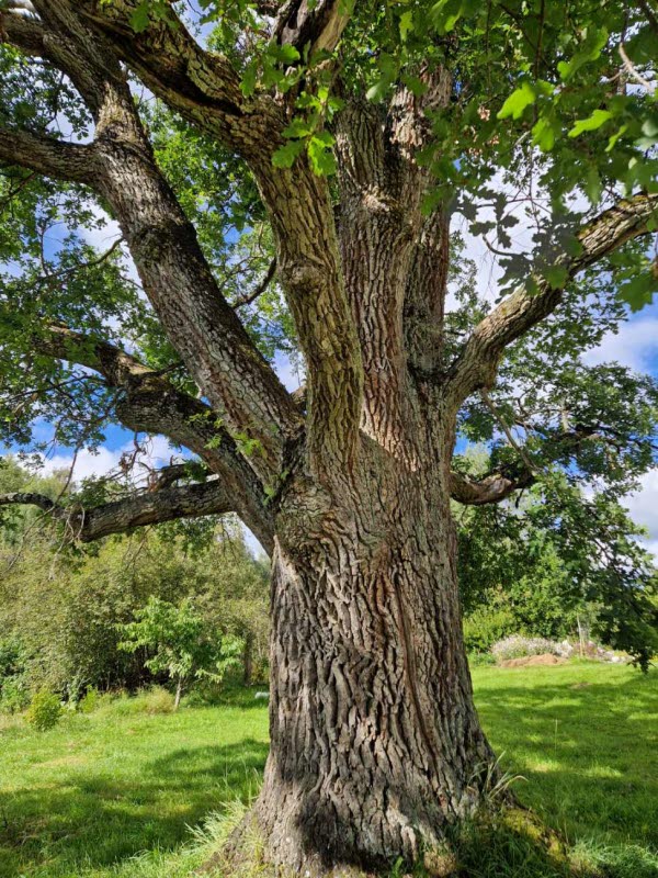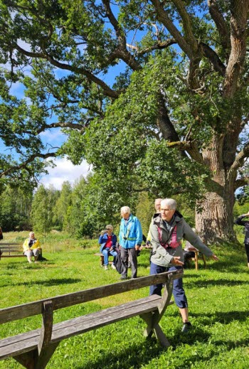 Vi satt bredvid den stora eken, som kan vara 250 år eller 400 år, t o m 500 år (ingen vet), men den är den näst största i Dalarna. Då mäter man omfånget i brösthöjd för att fastställa storlek.