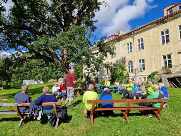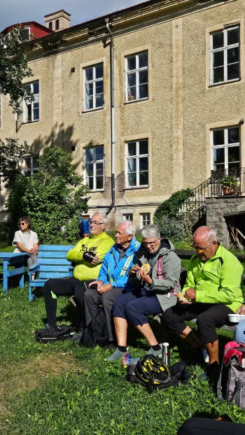 Dagens cykeltur med 23 deltagare hade ett litet annat upplägg än tidigare turer, nämligen ett besök med information om Lindsbergs kursgård och därefter en guidad tur. Vi samlades på gräsmattan på baksidan med en vacker utsikt över ängarna. Vår eminente guide Göran, som själv bott på kursgården för 40 år sedan, berättade med inlevelse och anekdoter historien om dåtidens Slättmyra, som fastigheten för länge sedan kallades, fram till nuvarande verksamhet. Fastigheten har varit både bergsmansgård, fattighus, ålderdomshem, kollektivboende och kursgård. Se mer på https://www.lindsberg.org/ och https://youtu.be/fuVwoCs1btg?si=81PrJ83-DD4hSGC8 för ytterligare information.