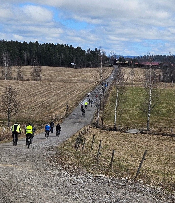 Oj, vilket intresse det var för denna tur! Trodde att det var lite för kyligt för många eftersom nätterna fortfarande är kalla och det tar lite tid innan solen värmer, men ack så fel jag hade. Långkalsonger på och då klarar man kylan! Jag fick hjälp, som så många gånger tidigare, av Lilian att räkna ihop alla deltagare. Hon fick det till 28 personer vid starten vilket är rekord för cykelturerna, som startade 18 juli 2023. Då, på första turen som gick till Ornässtugan, var vi 4 personer. Och det regnade rejält på hemvägen. Nu är vi lite mer noggranna 😀, vi byter helt enkelt cykeldag om det förutspås regn. 🌧 Läs här.