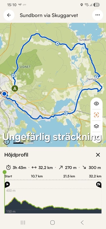 Nästa vecka blir det en tur på runt 3 mil till Sundborn. Se karta med ungefärlig cykelväg. Vi kör över Skuggarvet och ni som varit med tidigare känner till de sega backarna där. Förutom backarna som tar på krafterna så är det en fin tur. Vi kommer att köra till Sundborn flera gånger under säsongen men på andra vägar. Nu prioriteras asfalterade vägar tills det torkat upp.