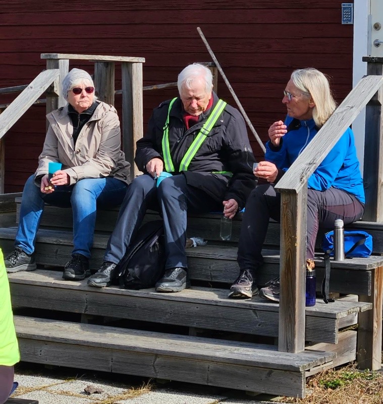 Den sedvanliga fikan intogs vid Falu kanotklubbs lokaler vid Hosjöholmen. Där finns bänkar och bord för många. Precis när vi kom dit tittade solen äntligen fram och det blev riktigt behagligt att avnjuta medhavd matsäck och dryck i den sköna värmen.