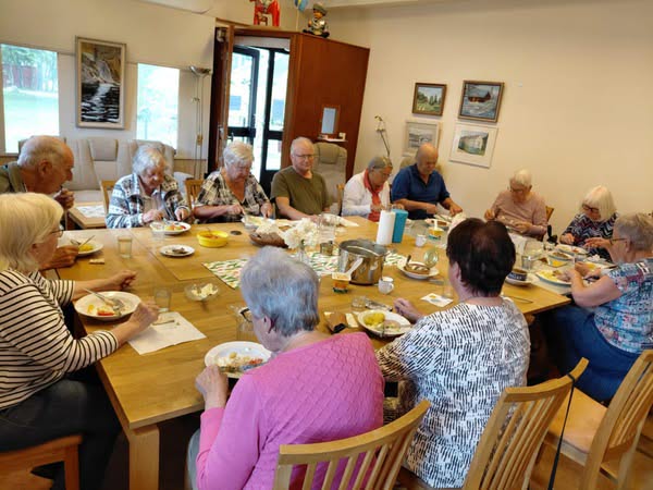 Det heter att man ska låta maten tysta mun, och så blev det lite idag, man kunde höra ett mmm, gott, smaskens bara till att börja med. Sen kunde man höra hur det började surras lite här och där och snart var samtalet i full gång igen. Efter maten blev det kaffe och kaka och lite diskussioner om vad vi förväntar oss av hösten.