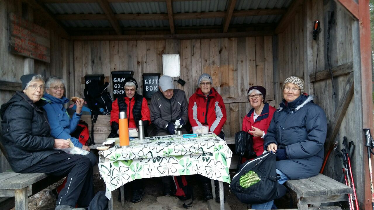 Uppe vid Utsikten är det alltid vackert så även idag. Här smakade det gott med en kaffe/te och tilltugg. Britta som är bevandrad i markerna visade oss en annan lite längre väg tillbaka Kolarkojan.