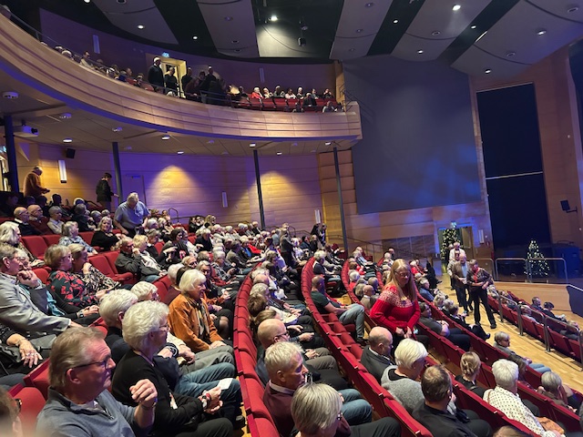 50 platser som vi fick tilldelade denna showen var slutsålda på 4 dagar redan i april månad så visst var den här resan populär. I restaurangen stod julsmörgås och must framdukade till oss när vi anlände till konserthuset. Vara konserthus är ett trevligt ställe att besöka, bra tillgänglighet och välkomnande personal.
