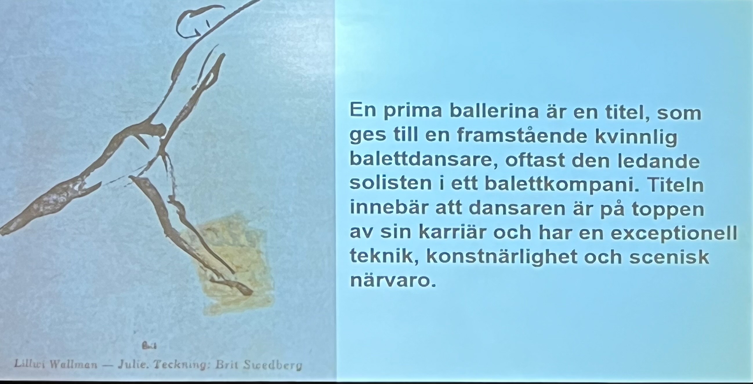 Kenneth och Lillvi satte sig bekvämt tillrätta på scenen och så sattes historien igång. Nu äntligen fick vi höra om Lillvis liv som Prima ballerina.