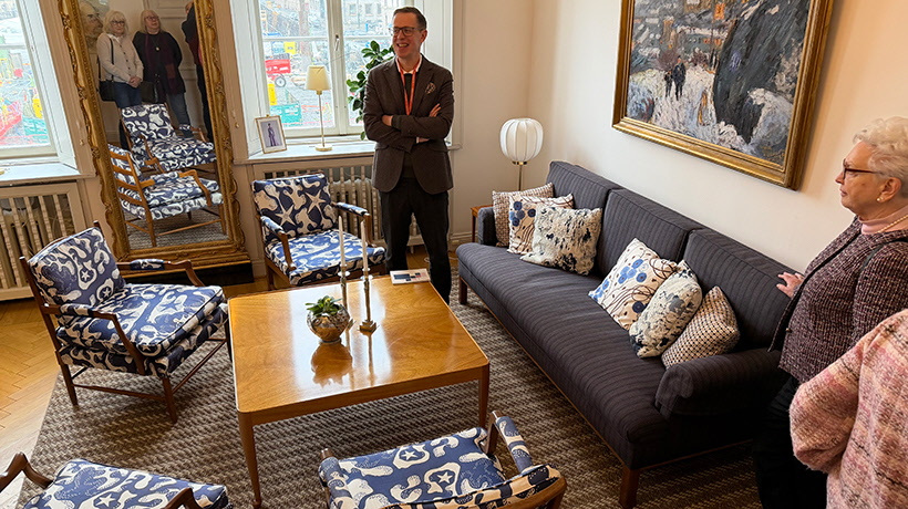 Den 27 februari hade SPF Örgryte bokat en guidning på Residenset. Intresset var stort och de 25 platserna fylldes snabbt. Rundvandringen hölls av Oskar Johansson, som är en mycket kunnig och engagerad medarbetare på Länsstyrelsen. Vi fick se de olika rummen med inredning från olika tidsepoker. Samtidigt som vi var där väntades ett officiellt besök av Norges ambassadör. Efter rundvandring bjöds nöjda besökare på kaffe och god kaka av residensets husfru Anneli Östling.