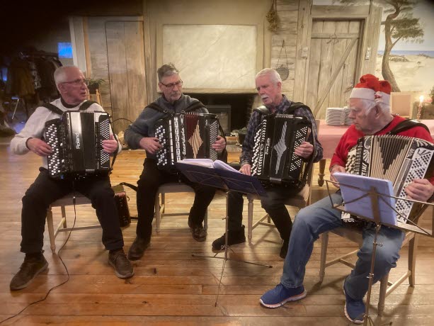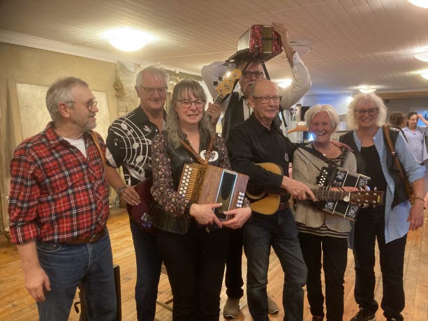 Efter den goda lunchen, fritt val mellan kåldolmar och stekta strömmingsflundror, blev det musikalisk underhållning av durspelsgruppen Stäure u sma från Sudret. De sju spelmännen, Anders, Benny, Bettan, Gunnie, Kattis, Mats och Tommy spred glädje med sång, durspel och gitarr. Tommy Pettersson presenterade gemytligt låtarna som framfördes. Det var sång-, dans- och gånglåtar, de flesta gotländska. Emrikkos hambo, Vardasveisu av Allan Nilsson och Marias vals av Stickan Alstäde för att nämna några - en mycket uppskattad musikunderhållning!
