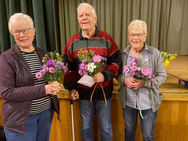 Vivan Olin avtackades för många år i föreningen som kassör med blommor och kram av ordförande Sören Thomsson.