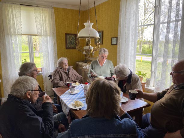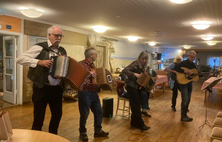 Pensionatets värdinna Lena Pålsson bjöd till bords och dagens lunch bestod av porterstek med tillbehör. Dagens underhållare var gruppen Astu Gubbar, som bjöd på uppskattad dragspelsmusik och sång. Och så var det dags för kaffet och dragningen på det obligatoriska lotteriet som fick avsluta eftermiddagen.